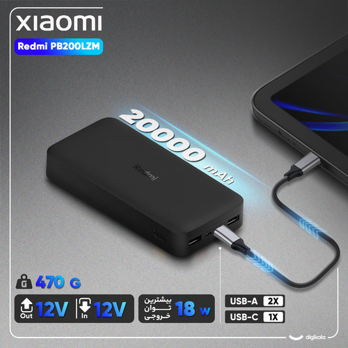 مشخصات فنی پاور بانک یک وسیله جانبی پرکاربرد است که نگرانی تمام شدن باتری گوشیهای هوشمند را از بین برده است. این دستگاه توانایی 4.8 مرتبه شارژ Iphone XS را دارد. Redmi 20000 با داشتن دوپورت خروجی USB و پشتیبانی از انواع پروتکلهای شارژ سریع، بهترین همراه شما در خارج از منزل، محل کار و یا هنگام سفر خواهد بود. این محصول با استفاده از سیستم شارژ هوشمند به راحتی میتواند به طور همزمان دو دیوایس شما را شارژ کند، شارژ هوشمند ورودی مناسب را برای هر دیوایس در نظر خواهد گرفت. این محصول با ابعاد 7 × 15 سانتیمتر سبک، راحت و قابلحمل است و به راحتی میتوانید انواع دیوایسهای خود مانند گوشیهای هوشمند، دوربین، تبلت و غیره را در طول روز شارژ کنید. دارای سیستم محافظت در برابر مشکلاتی مانند نوسانات برق، اتصال کوتاه، تغییرات دما، اضافه جریان در ورودی و خروجی و غیره است. این پاور بانک از پورت خروجی دوگانه USB_A و پورت ورودی دوگانه USB-C و MicroUSB برخوردار است. همچنین حداکثر میزان قدرت برای پورت ورودی 5V _2.1A و پورت خروجی آن 5.1V_3.6A است. این دستگاه دارای دو درگاه ورودی MicroUSB - TypeC برای شارژ است و قابلیت سازگاری با تمامی گجت های هوشمند شما را دارد. در مجموع این پاور بانک با توانایی چندین بار شارژ گوشیهای هوشمند، میتواند یک انتخاب مناسب برای استفاده روزمره باشد.